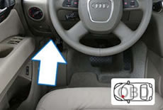 Vehículo afectado: Audi Q7 3.0 TDI BUN 2008. Diagnosis de la avería: La rutina de diagnosis implica realizar una lectura de los códigos de avería, para ello se emplea en el equipo de diagnosis CDP+ de Miac con la nueva actualización versión 3 del 2012. La conexión OBD se localiza en el espacio reposapiés lado conductor junto al pilar de puerta. La lectura de los códigos de error muestra lo siguiente: